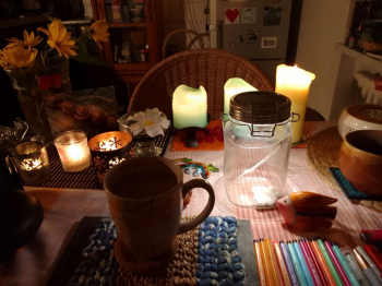 geht an Frau Cosmea Schentke, die ein Foto mit einer gemütlichen Morgenstimmung bei großer fairer Vielfalt eingeschickt hat. - Vom Becher über den Untersetzer, die Tischdecke, das Solarlicht, das Windlicht, den Specksteinfisch und den Gecko - alles fair - da schmeckt´s :)